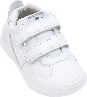 The Biomecanics Unisex Shoe in Blanco offers exceptional comfort and support for growing feet. Crafted from premium leather, it features a soft interior lining and flexible sole for natural movement. The double Velcro straps make it easy to adjust for a secure fit, while the reinforced toe provides extra durability for everyday adventures.