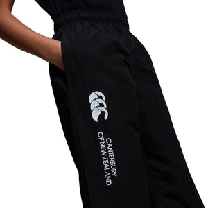 Whether it's training or just relaxing at home these kids track pants are a great addition to your collection. Finished in black with an elasticated waistband for a comfortable fit. Featuring full length zips to the outside of the legs.