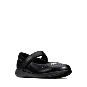 Clarks Girls School Shoe Etch Spark T Black Leather