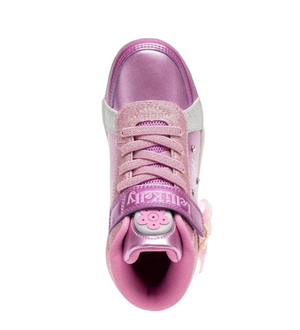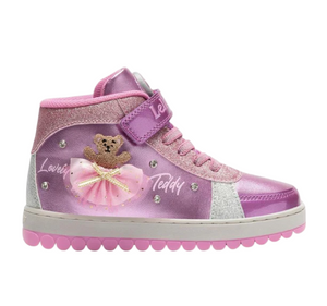 The Lelli Kelly Lovely Teddy high-top trainers are the ultimate mix of fun, sparkle and magic. Designed in shimmering pink with glittery panels, they feature a sweet teddy bear in an interchangeable tutu, finished with rhinestones for extra dazzle. A special button on the tongue activates both music and lights, making every step an adventure. With elastic laces and a handy velcro strap fastening, these trainers keep little feet secure and comfortable all day long.