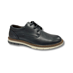 A smart boys shoe from Lloyd & Pryce, part of the Tommy Bowe collection. In synthetic navy with navy top stitching for a stylish finished look. Fastened with navy laces, the classic branding to the tongue and a padded collar for a comfortable fit. Finished with a brown, white and blue sole.