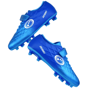 The Ignisio Easy Fasten Moulded Stud Rugby Boot from Optimum is a lightweight and flexible kids rugby boot designed for speed and agility.  In a mix of two shades of blue, featuring a convenient velcro strap fastening with bungee laces and a semi sock collar for a secure and comfortable fit.  Complete with 12 plastic moulded stud outsole perfect for firm ground surfaces.  Standard fitting.