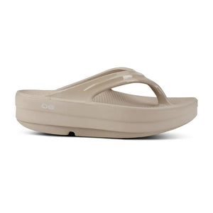 A toe post platform sandal from Oofos. The Oomega Oolala is a stylish yet functional sandal, designed for active recovery with its Oofoam shock absorbing technology and unique footbed design to reduce stress on your joints. The Oomega Oolala features a deep midsole containing an additional 15mm of Oofoam. Machine washable.
