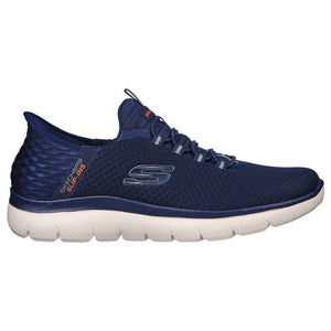 These stylish slip on Summits trainers from Skechers are perfect for him. Designed with their exclusive Heel Pillow™ and cushioned Skechers Air-Cooled Memory Foam® comfort insole. Finished with bungee laces for a comfortable fit. Machine washable