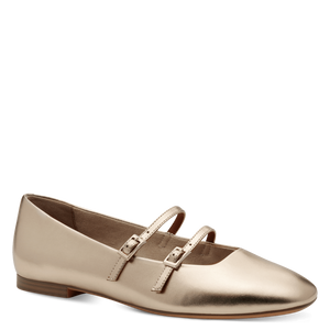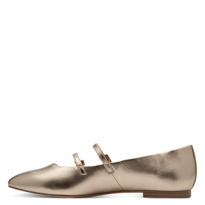 These ballerina style ladies shoes from Tamaris are a gorgeous addition to your outfit. Crafted in a shimmering bronze gold, fastened with two adjustable straps with gold buckles. The low 10mm heel height offers a safe and secure step, and the padded insole ensures a comfortable fit.